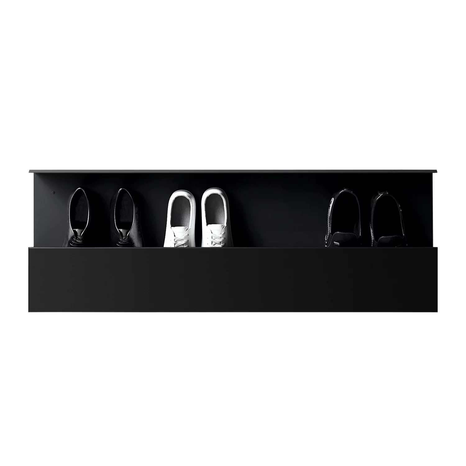 Als elegante und praktische Lösung zur Aufbewahrung von Schuhen an der Wand – minimalistisches Design vereint mit höchster Haltbarkeit. Aus pulverbeschichtetem Stahl gefertigt, hält das Schuhregal sowohl der Feuchtigkeit von Schuhen als auch täglicher Beanspruchung stand. Mit seinem schlanken Profil eignet es sich sogar für schmale Eingangsbereiche und lässt sie größer wirken. Der Boden bleibt frei und kann leicht gereinigt werden.